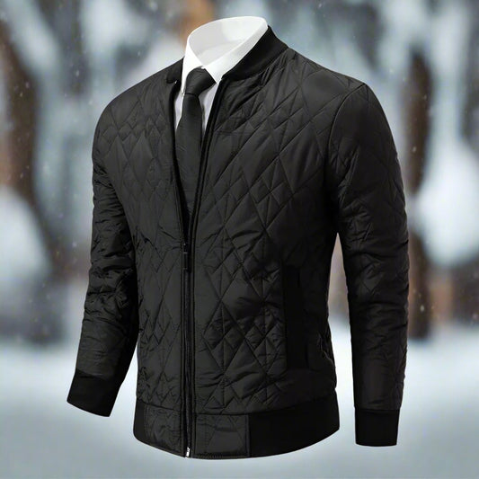 Harrison Quilted Hip-Length Winter Jacket | Stand Collar Full Zip Jacket