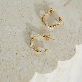 Channel your inner luxe with the 18k Gold Plated Exotic Pearl Earrings. Features a hoop design with pearls.