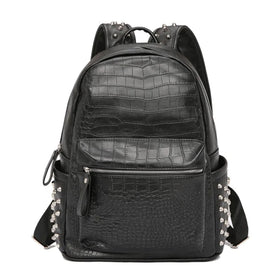 Designed for the man who travels with presence, this backpack pairs a crocodile-texture vegan leather with silver-tone stud detailing. Spacious enough for everyday needs, and distinct enough to go anywhere.