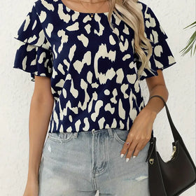 Evelyn's casual crew-neck blouse features an all-over print, offering a relaxed yet appealing style. The classic neckline provides timeless appeal, while the print adds personality. Perfect for everyday wear and easy mixing and matching.