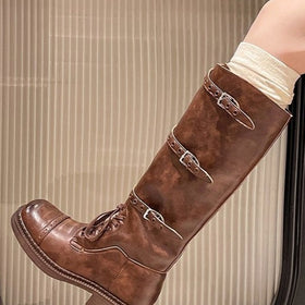 Retro distressed British square toe lace-up Martin boots