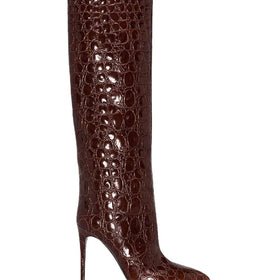 Snake-print high-heeled pointed-toe straight-leg boots