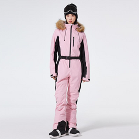This women's winter overall with hood combines modern design with practical function. The tailored fit and structured cut create a clear silhouette, while the hood with faux fur detail adds a subtle accent.
